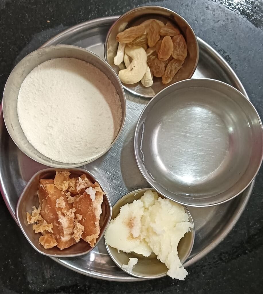 गुळाचा पाक करू नये त्यामुळे शिरा कडक होईल. पूर्वी तुपाएवजी तेल वापरायचे.तेलाचा शिरा ही उत्तम चवीला लागतो.