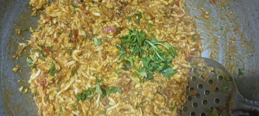 वरून अजून थोडे तेल सोडा. वरून चिरलेली कोथिंबीर घाला. आता आपली अंड्याची गरमागरम भुरजी तयार झालेली आहे……….
