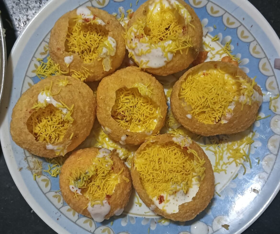 तुम्ही दही आणि साखर मिक्सरमधून सुद्धा फिरवून घेऊ शकतात. एका डिशमध्ये पाणीपुरीचे फुगे फोडून घ्या.