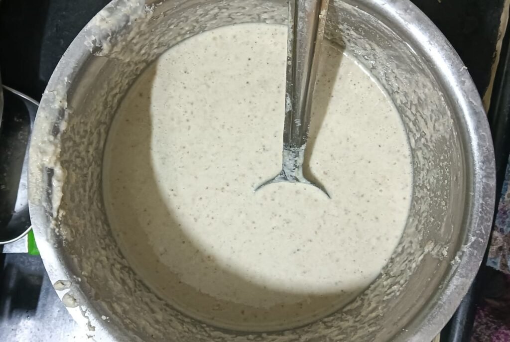 ज्याप्रमाणे आपण इडलीचे रवण वाटतो त्याचप्रमाणे हे रवण वाटून घ्यावे. रवण वाटल्यानंतर साधारण सात ते आठ तासात ते फुगून येते.
