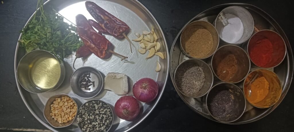 मसाला तयार करताना मी इथे एक वेगळीच पद्धत वापरलेली आहे इथे आपण कांदा आणि खोबरं डायरेक्ट गॅसवर भाजणार आहे…..