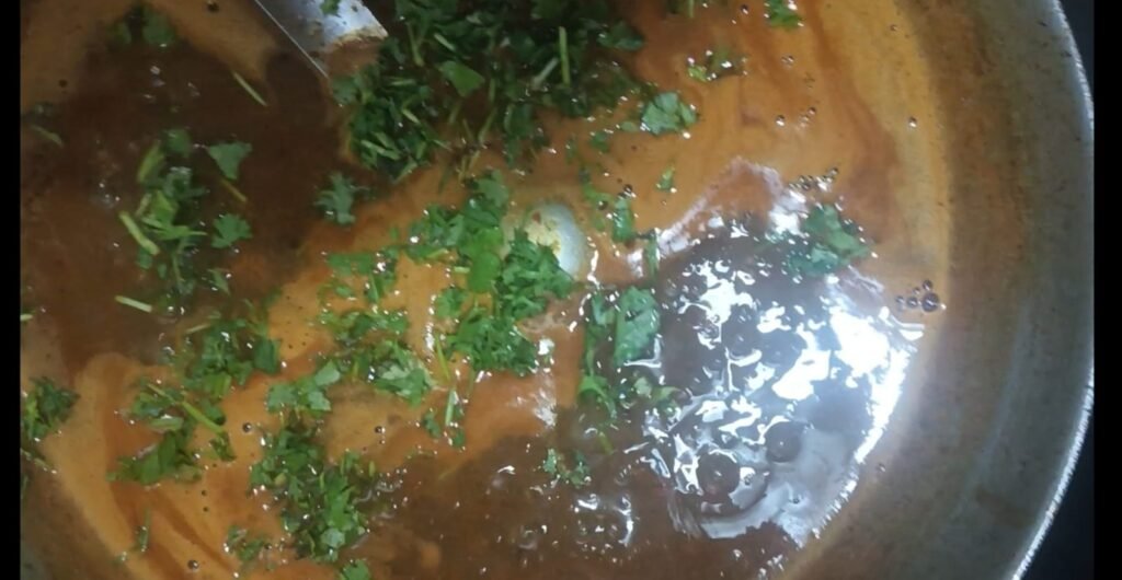 मी माझ्या प्रत्येक रेसिपी मध्ये सांगितलेली आहे. …. भाजीला उकड्या आल्यानंतर त्याच्यामध्ये चिरलेली कोथिंबीर घाला आता आपली फौजदारी डाळ तयार झालेली आहे….