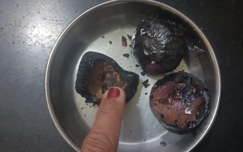 भाजीची चटणी बनवताना आपल्याला कांदा भाजूनच घ्यायचा आहे आणि संपूर्ण कांदा त्या चटणी मध्ये घालायचा आहे त्यावरचे वरचे साल वेगळे करायचे नाही कारण त्या सालीसकट आपल्याला कांदा घालायचा आहे वाटल्यास तुम्ही कांदा सुरुवातीला धून भाजू शकतात….
