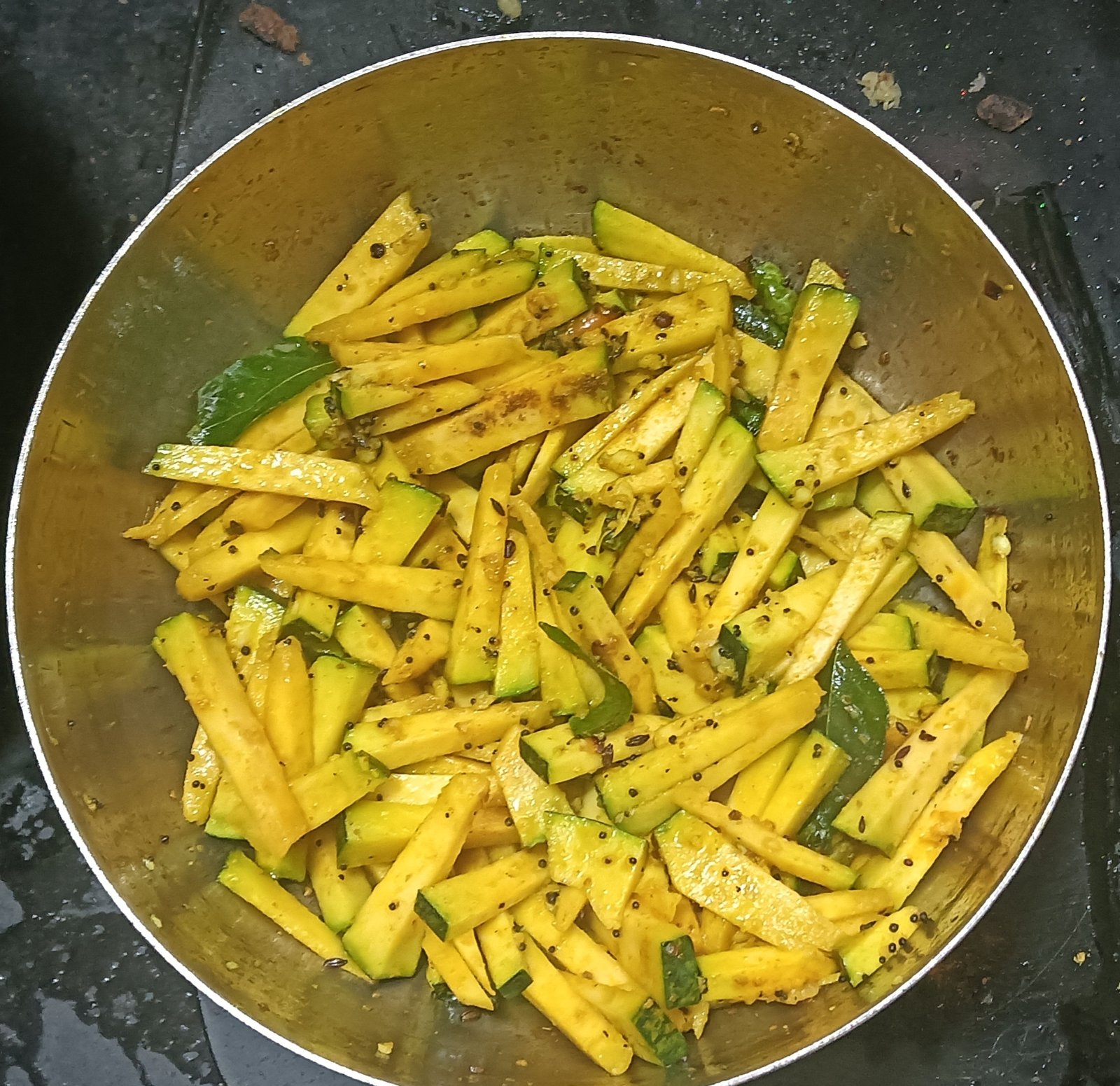 नंतर भाजीवर झाकण ठेवून अधून मधून परतवत रहा.भाजी चांगली शिजत आली किंवा नरम झाली की त्यामध्ये चवीप्रमाणे मीठ घाला.