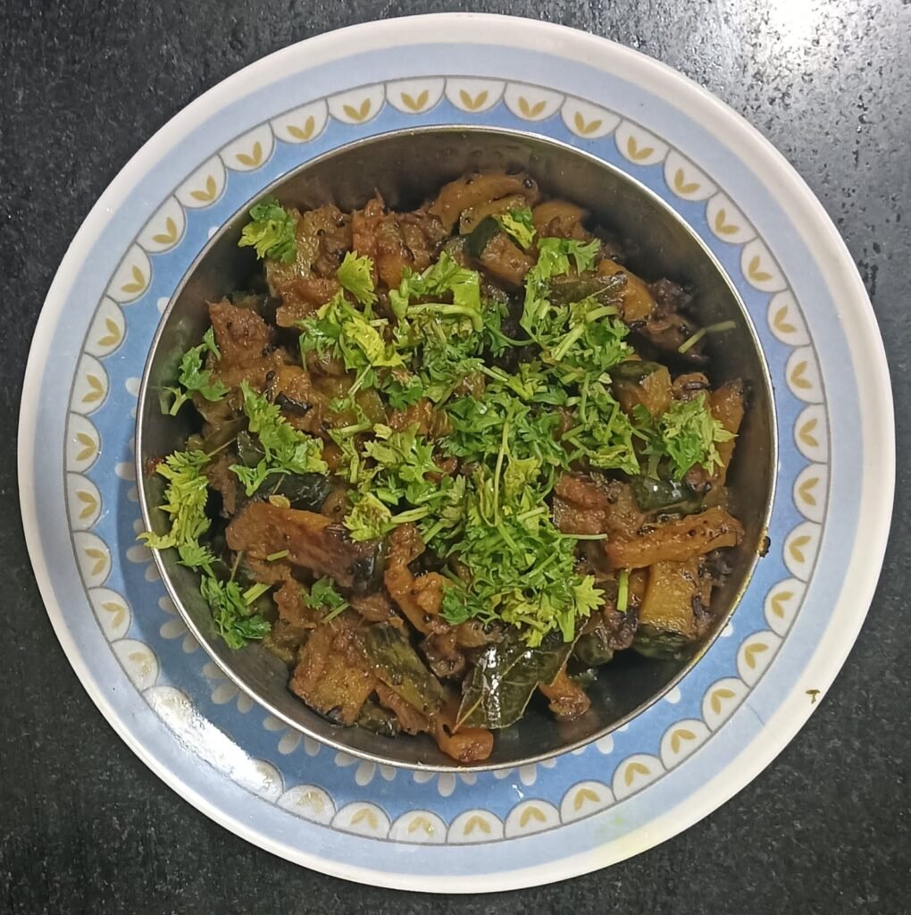 भोपळा, शिजला की त्यात चिस्लेली कोथींबीर घाला.