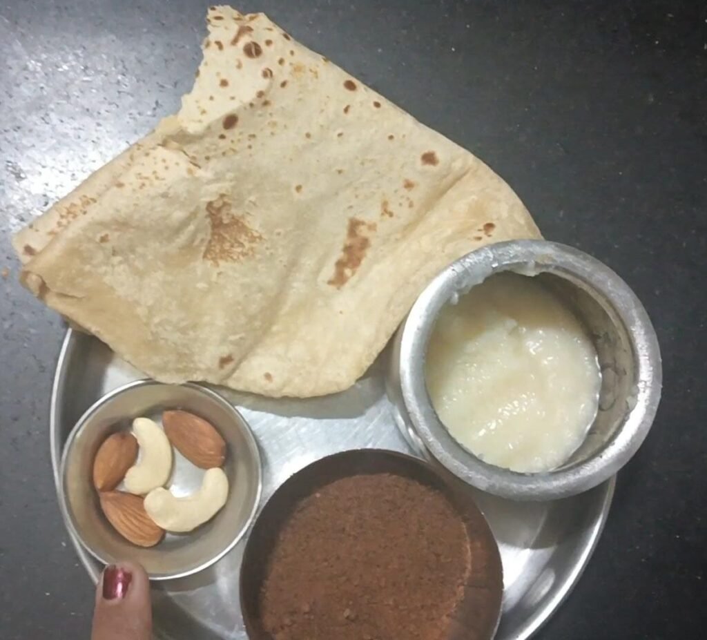 त्याचे तुकडे ठेवू नये म्हणजे चूरम्यामध्ये मिक्स करताना सोपे जाते….. आपला साजूक तुपाचा गुळाचा चुरमा तयार झालेला आहे………
