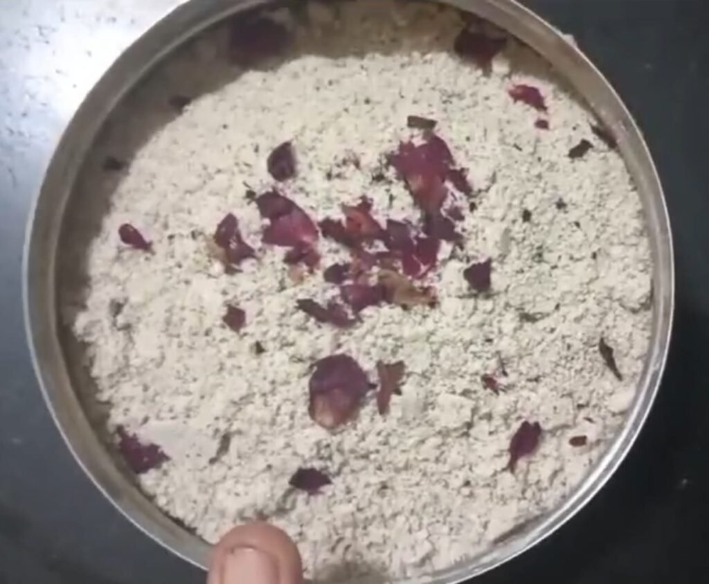 सर्वप्रथम खडीसाखर खलबत्त्यामध्ये कुटून घ्यावी.. नाहीतर मिक्सर चे भांडे खराब होते.. खडीसाखर डायरेक्ट मिक्सरमध्ये बारीक होत नाही…मिक्सरच्या भांड्यामध्ये खडीसाखर पावडर काजू बदाम मिलन सीड खसखस शोप मिरे, हिरवे वेलदोडे गुलाबाच्या पाकळ्या घालाव्या…. हिरवे वेलदोडे हे अख्खेच घालावे… त्यामध्ये त्याचा फ्लेवर उतरतो…. आता हे मिश्रण हळूहळू मिक्सरमध्ये बारीक करावे. त्याची एकदम बारीक सर फूड करावी.. ही पुढचा आणि च्या साह्याने गाळून घ्यावी… चाळल्यानंतर बारीक पावडर तयार होईल… त्याची बारीक पूड झाल्यानंतर त्यामध्ये पुन्हा गुलाबाची पाने लांब काप करून घालावी.. त्यानंतर यामध्ये केशराच्या काड्या घालाव्या आणि मिश्रण व्यवस्थित एकत्र करून घ्यावे… आपला थंडाई मसाला आता तयार झालेला आहे…
