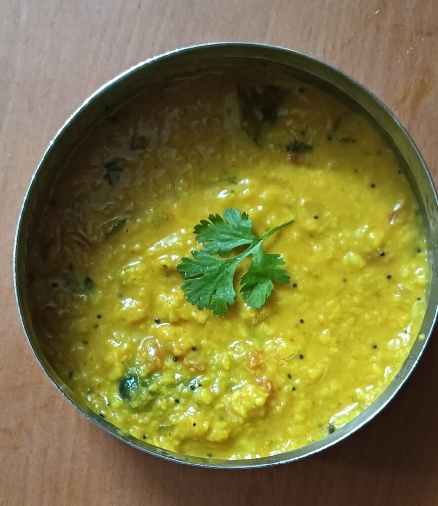 त्याप्रमाणे या तिन्ही डाळी चे वरण वाफवून घ्यावे कुकरला तीन ते चार शिट्ट्या होऊ द्याव्यात.