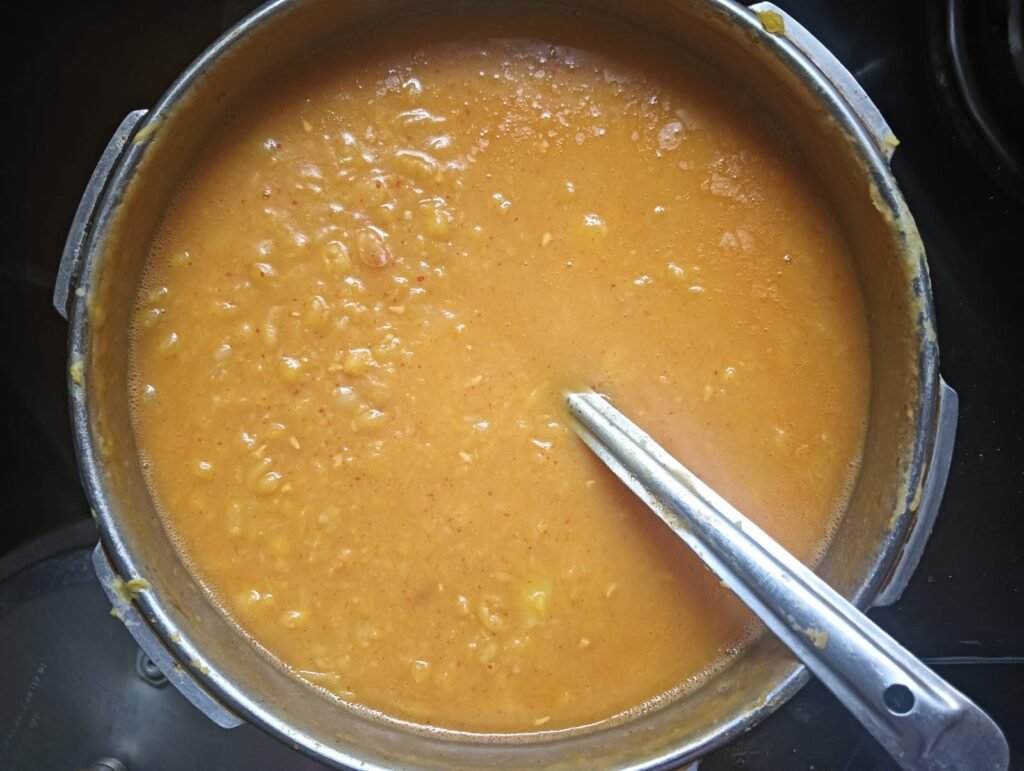 आता हे व्यवस्थित एकत्र केल्यानंतर साधारण पाच ते सहा शिट्ट्या कुकरच्या होऊ द्या… पाच ते सहा शिट्ट्या झाल्यानंतर कुकरचा गॅस बंद करा…