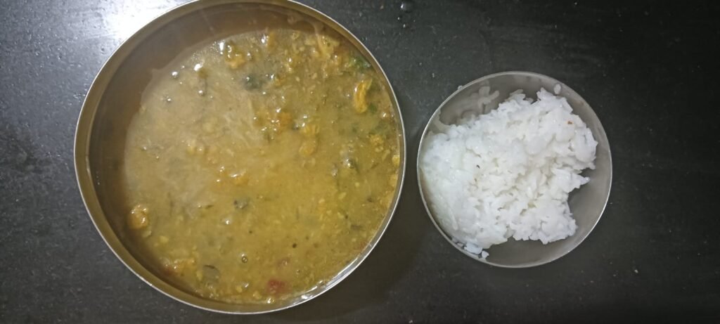 दोन शिट्या होऊ द्या भात तयार होईल. भाताबरोबर अत्यंत चवीला छान लागते.