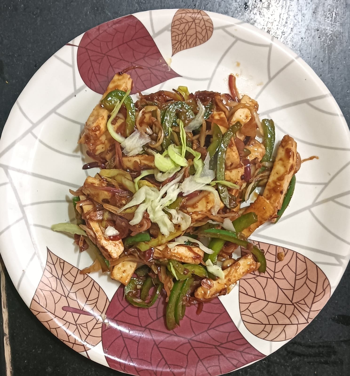 - (पनीर चिली किंवा कुठलेही चायनीज पदार्थ बनवताना आपण लोखंडी कढईतच बनवावे. लोखंडी कढईत बनवल्यामुळे आपल्याला जेवणातून लोह मिळते. तसेच बाहेरच्या रेसिपीचा आस्वादही मिळतो.)