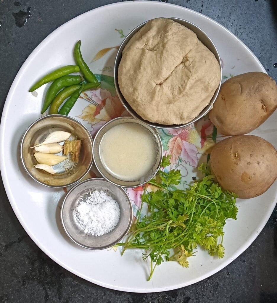 कणकेचे छोटे छोटे गोळे बनवा. तसेच आपण केलेल्या बटाट्याच्या मिश्रणाचे सुद्धा छोटे छोटे गोळे बनवा.