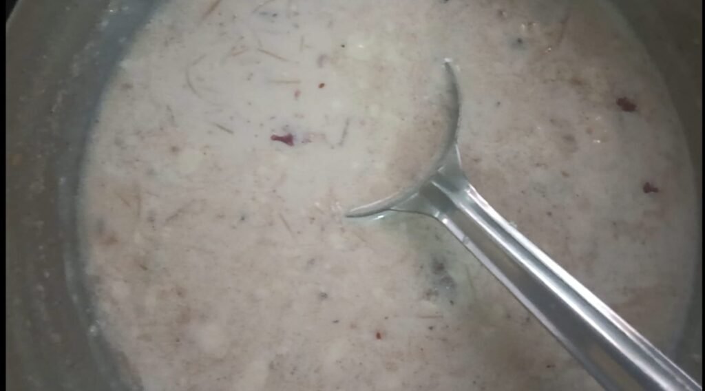 शेवया चांगल्या नरम झाल्या की गॅस बंद करावा… तुम्हाला मिश्रण जर घट्ट वाटत असेल तर तुम्ही अजून एक वाटी त्यामध्ये दूध घालू शकतात…