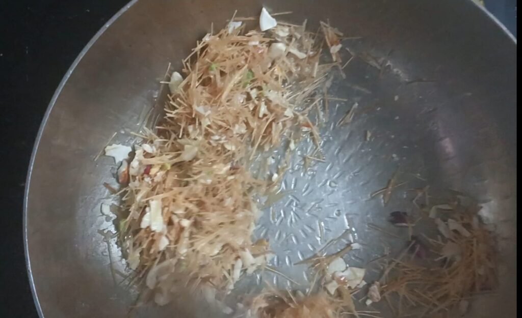 शेवया चांगलं तांबूस रंगावर परतल्यानंतर खोबरा कीस खारीक पावडर काजू-बदामाचे काप… घालून चांगले परतवून घ्या.. …….