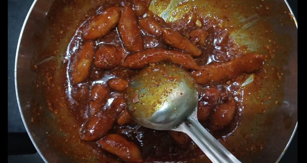 टिप्स:: इथे मी गुळाचा वापर केलेला आहे तुम्हाला जर गूळ आवडत नसल्यास तुम्ही साखरेचा सुद्धा वापर करू शकतात प्रमाण सारखेच घ्यायचे आहे…. तसेच मी लोणच्याचा मसाला वापरलेला आहे त्यामुळे त्यामध्ये हिंग असतो म्हणून मी इथे व्यतिरिक्त हिंग टाकलेला नाही तुम्हाला जास्त हिंगाची चव आवडत असल्यास तुम्ही आपल्या आवडीप्रमाणे दोन चिमटी इतका हिंग तेलामध्ये घालू शकतात….