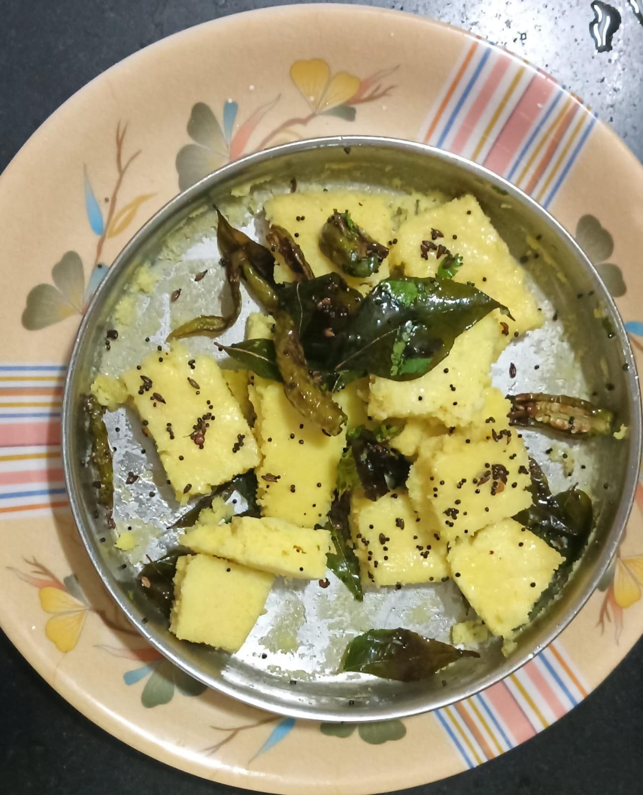 सुरीला ढोकळ्याचं चिटकला नाही तर ढोकळा झाला आहे. असे समजावे. त्यावर फोडणीचे तेल घाला कोथिंबीर घाला आणि ढोकळे तयार आहे