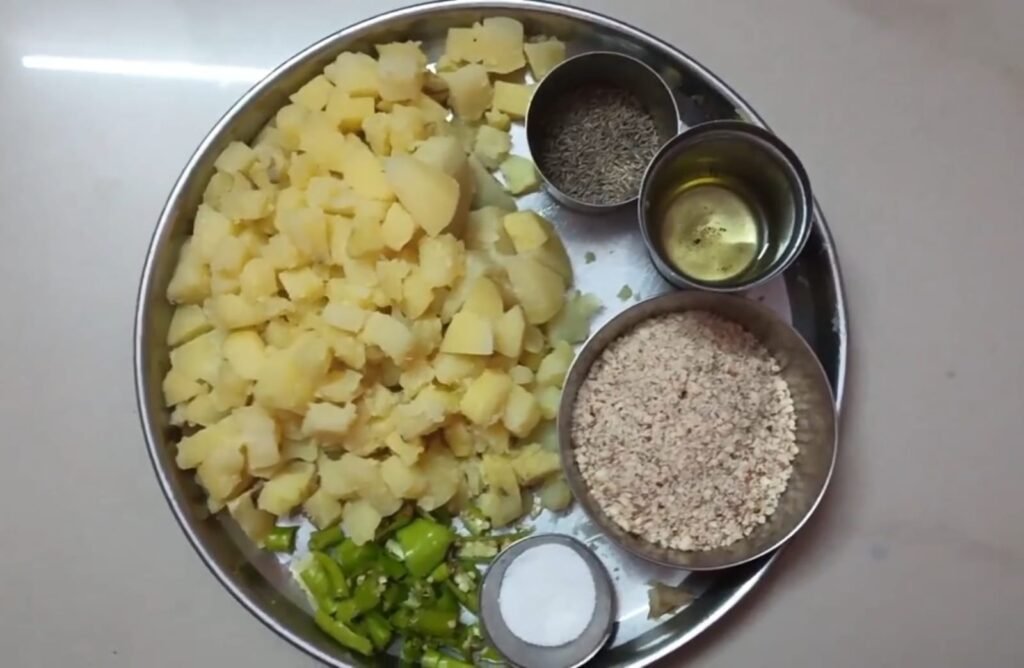 बटाटे पाणी घालून कुकरमध्ये दोन ते तीन शिट्या घेऊन उकडून घ्या. बटाटे उकडल्यानंतर त्याची साल काढून घ्या .