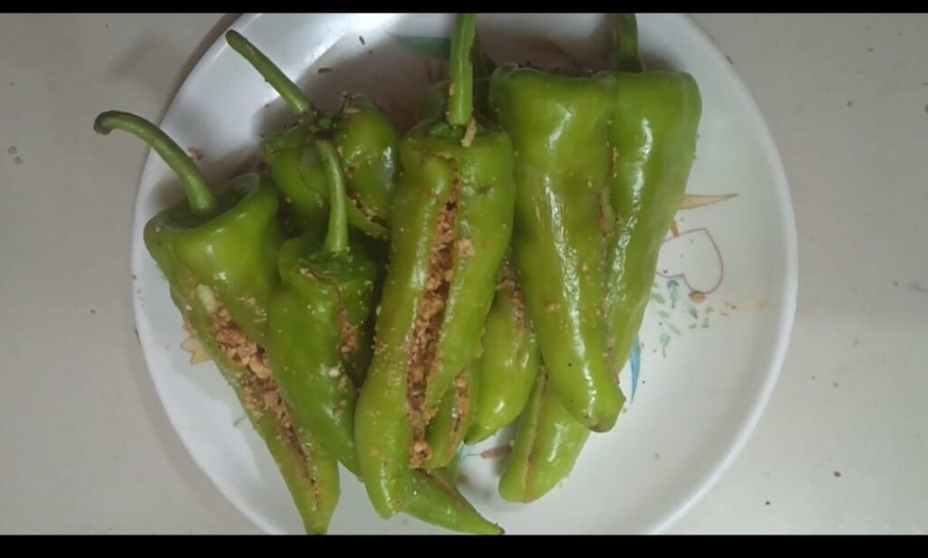 याप्रमाणे सर्व मिरच्यामध्ये आपण शेंगदाण्याचे कुटाचे मिश्रण भरून घेतले आहे. आता कढईमध्ये तेल घाला त्यामध्ये मिरच्या फ्राय करण्यास ठेवा.
