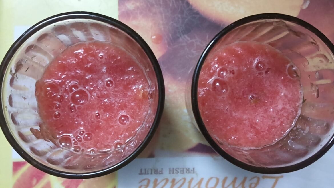 प्रथम टरबूज कापून घ्या.. टरबूज हे पाण्यामध्ये ठेवून थंडगार करून घ्या….त्यामधील आतल्या बाजूतील गराचे दोन ते तीन तुकडे काढा…. गरामधील सर्व बिया काढून घ्या…. बियांचे बारीक क्रशर च्या साह्याने क्रश करून घ्या…. आता हा गर मिक्सरमध्ये घाला त्यामध्ये एक ते दोन चमचे पिठीसाखर घाला… आणि कर चांगला चिकन होईपर्यंत मिक्सरमधून फिरवून घ्या…. आता हा घटक सरकारच विलासामध्ये घाला आणि त्यामध्ये स्ट्रॉ घालून प्यायला द्या…. त्यामध्ये तुम्ही आईस क्यूब घाला…. किंवा आपले टरबूजही थंड आपण करून घेतलेले आहे… नाही घातले तरी चालेल… यामध्ये तुम्ही अर्धा ग्लास दुधाचा वापर करू शकता…. हे ड्रिंक सुद्धा खूप छान लागते…. आवडत असल्यास थोडे चिया सीड भिजत घालून त्या सुद्धा घाला… थंडगार असे टरबुजाचे शीतपेय तयार झालेले आहे…. यामध्ये तुम्ही साखरेच्या ऐवजी खडीसाखरे कुटून घातली तरी चालेल…. यामध्ये थोडा चाट मसाला सुद्धा वापर कमी करू शकतात…. टरबूज असा ज्यूस आणखी चटपटीत लागेल…. आणि शुगर असेल त्यांच्यासाठी पिठीसाखर नाही घातले तरी चालेल… फक्त टरबुजाचे काम मिक्सर मधून फिरवून घ्या… आणि आईस क्यब घालून ज्यूस त्यांना द्यावा….. या ज्यूस मध्ये तुम्ही क्रीम चा सुद्धा वापर करू शकतात… मी इथे एकदम साध्या पद्धतीचा वापर केलेला आहे…. पण मी तुम्हाला अनेक पद्धती इथे सांगितलेल्या आहेत…. ज्या वेळेस आपण दूध घालतो त्या ऐवजी क्रीम घातली तरी चालेल… आणि आपण आईस क्यूब घालतो त्यामुळे त्यामध्ये पातळ होते…