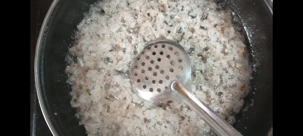आणि त्याच्या लाह्या फुटेपर्यंत तो तळून घ्या. असे एक एक चम्मच घालून डिंक तळून घ्या. डिंकाच्या छान लाह्या तयार होतात.